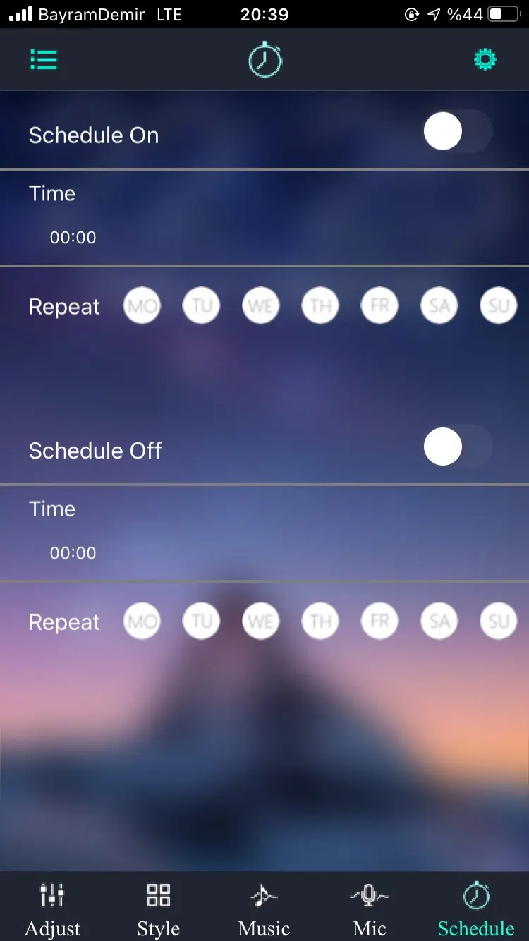 Всё работает, подключил к смартфону . Выставил время:теперь в 16:00огоньки зажигаются и в 21:30 гаснут.
