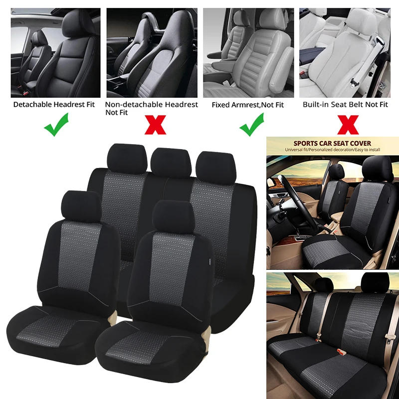 Универсальные Защитные чехлы для автомобильных сидений, спортивный чехол из жаккардовой и полиэфирной ткани, однотонный черный, подходит для большинства автомобилей, грузовиков, внедорожников и фургонов