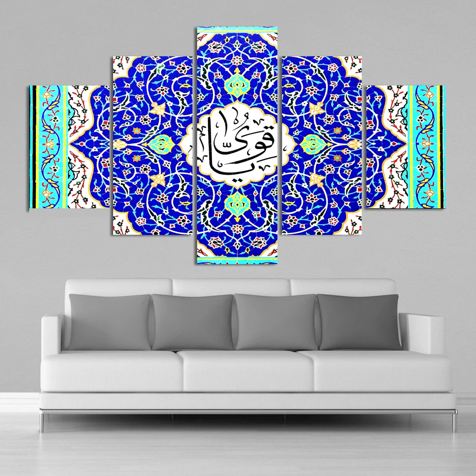 Исламские плитки и мозаика, настенные художественные 5 штук, Исламская Картина на холсте для стены, плакаты, настенные художественные картины, декор для гостиной, рамка