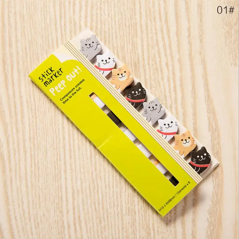 Клейкие блокноты для заметок, 8 шт.лот, с изображением животных, кошек, панд, канцелярские принадлежности, школьные принадлежности