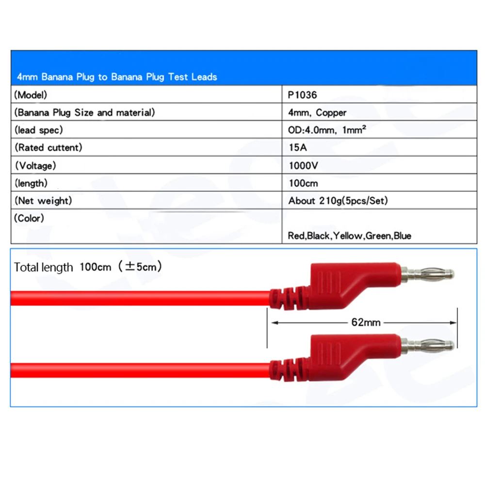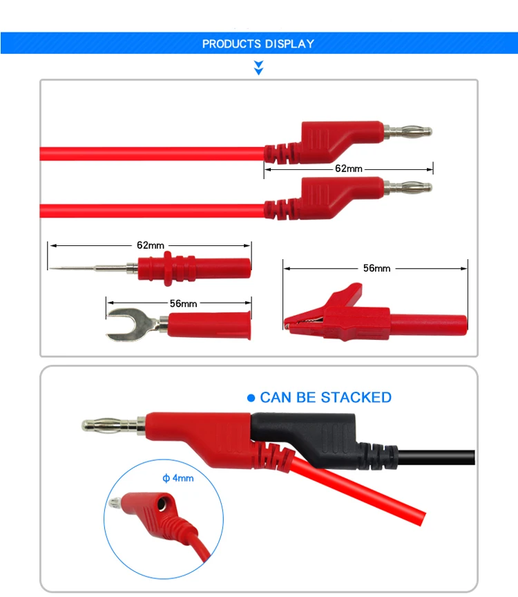 TKDMR 30 шт. в наборе 5 цветов 4 мм стандартный Гладкий силиконовый свинцовый Тестовый Кабель для мультиметра 1 м U-образный зажим типа крокодил