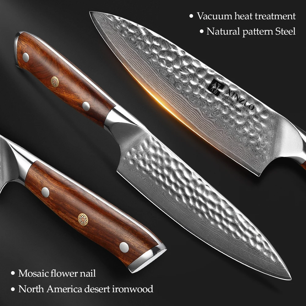 Нож шеф-повара XINZUO из дамасской стали 6,5 дюйма, острый кухонный аксессуар, нож для стейка, инструмент для приготовления пищи в Северной Америке, пустыня, железная рукоятка