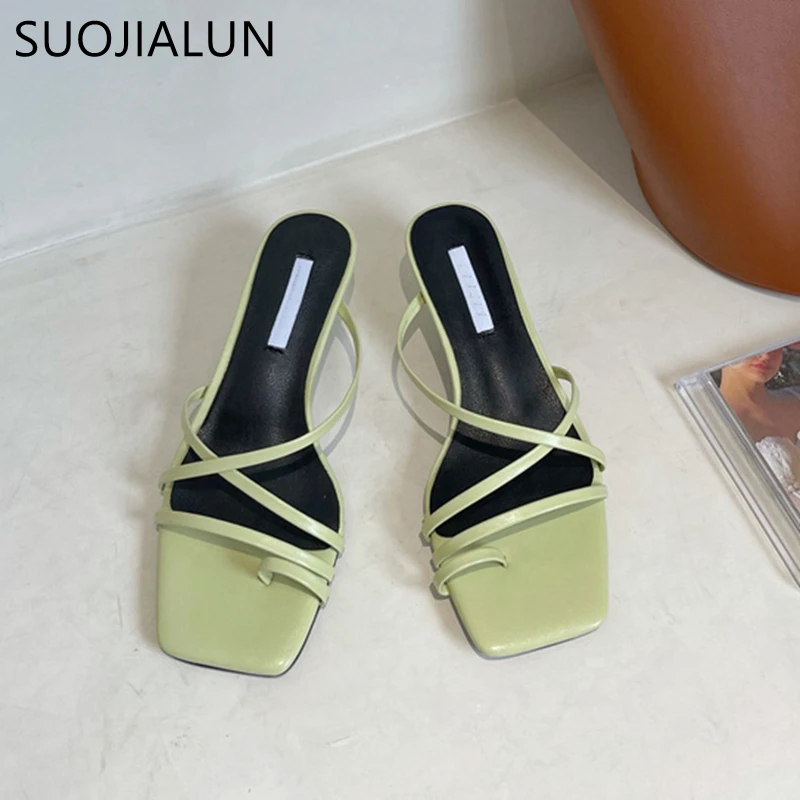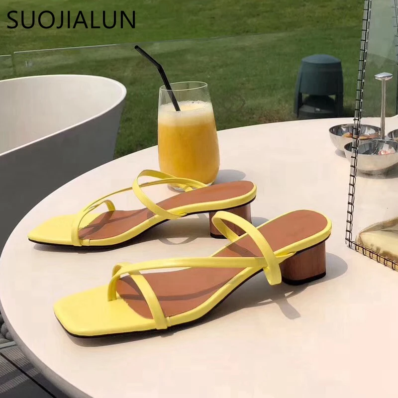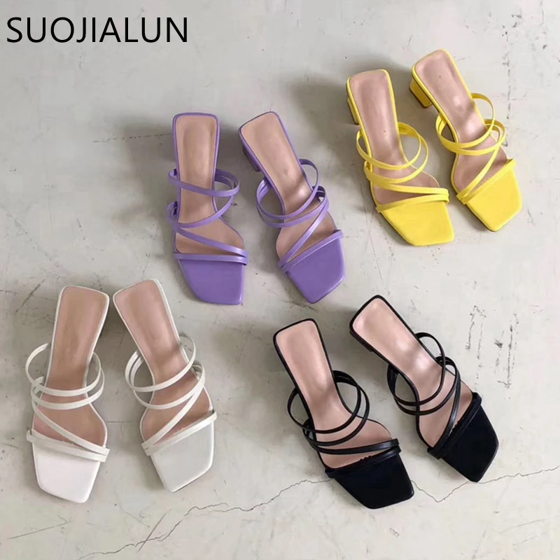 Шлепанцы женские SUOJIALUN, на низком каблуке, с открытым носком, на квадратном каблуке, летние, 2021