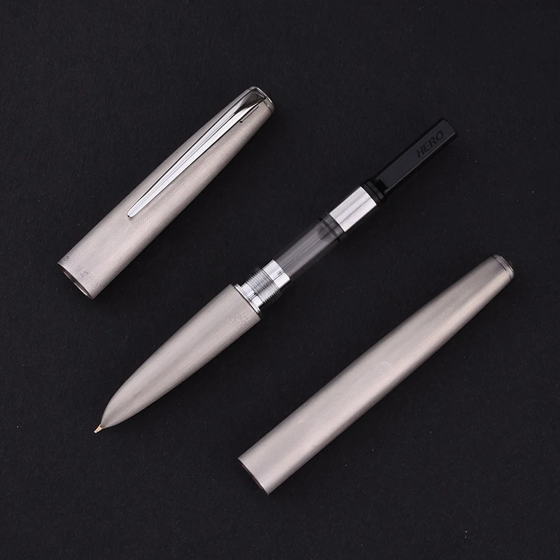 Я верю, что каждая ручка Вентилятор знает hero 100 авторучка. После более чем 50 лет опыта работы, он по-прежнему остается основой национальных ручка. Инновационный на основе традиции, весь корпус ручки сделан из матового серебристого металла, который очень текстурирован. Отказ от оригинального метода поглощения сжимаемых чернил, он использует поворотный преобразователь чернил, вы можете работать с чернилами в бутылках или картриджами. Так удобно!
