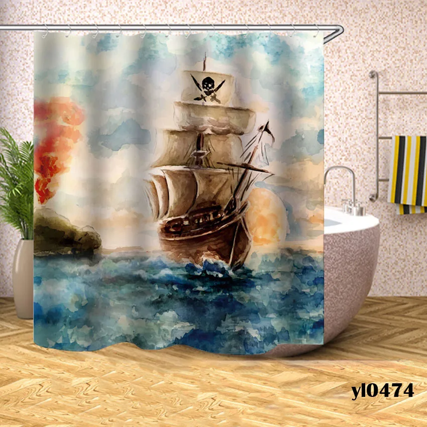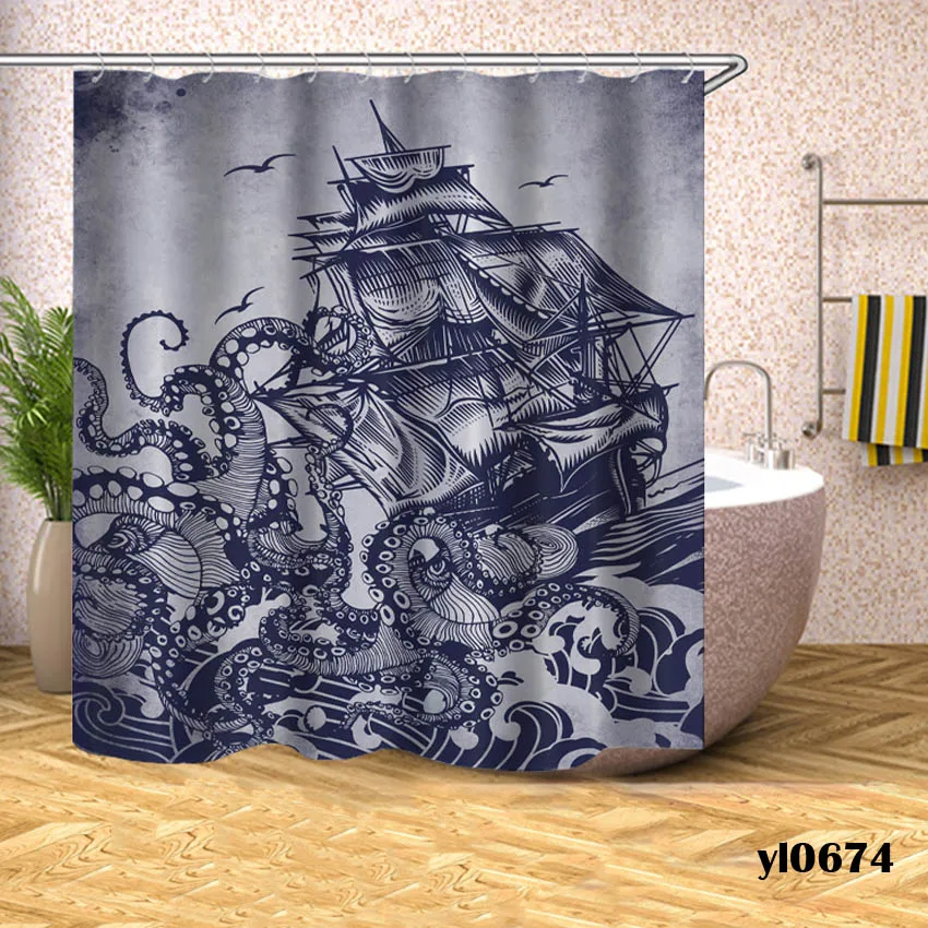 Шторы для душа Осьминог, водонепроницаемые занавески для ванны с лодкой, большой широкий домашний чехол для купания