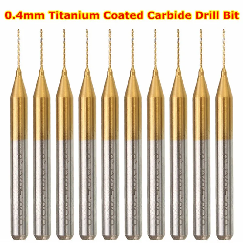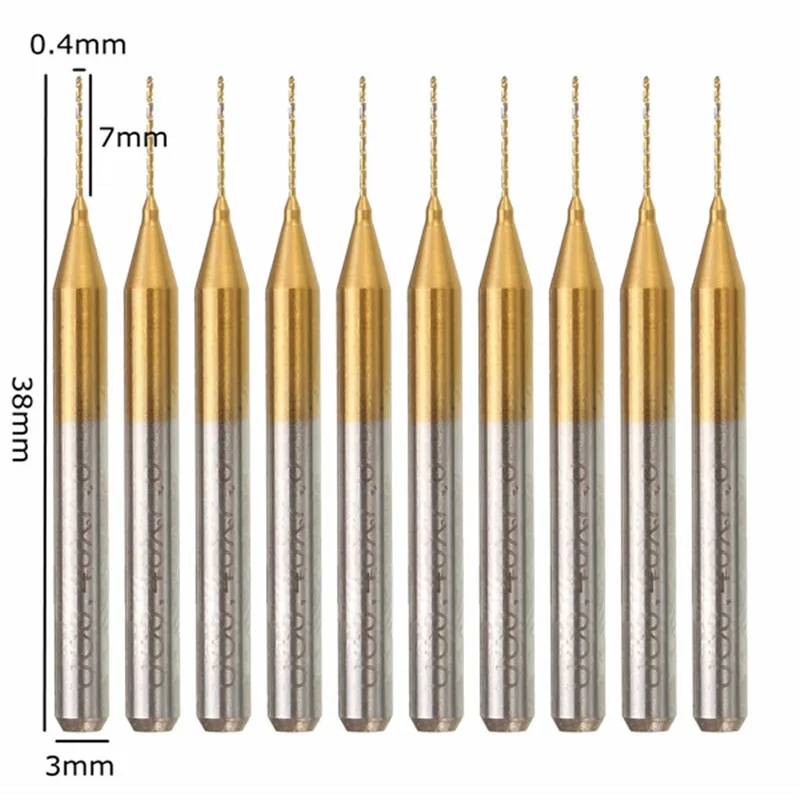 10 шт., сверло для станка с ЧПУ 0,4 мм, твердосплавное покрытие из титана 18 ", для обработки ювелирных инструментов с коробкой, набор сверл
