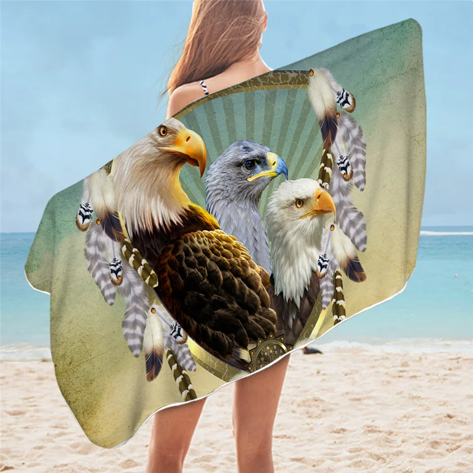 Полотенце банное прямоугольное из микрофибры с принтом орла, 75x150 см