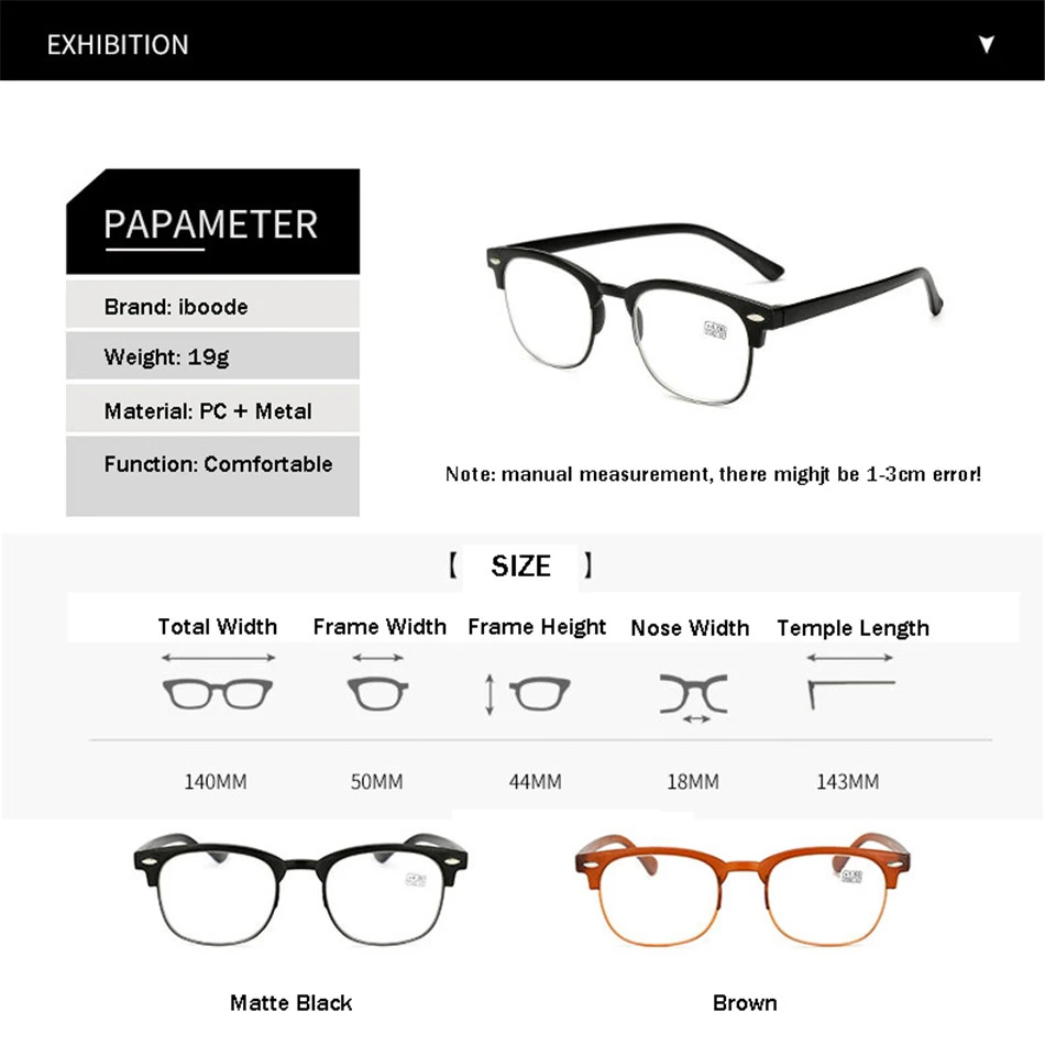 Очки для чтения iboode TR90 унисекс, классические лёгкие аксессуары с полуоправой в ретро стиле, для пресбиопии, + 1 1,5 2,5