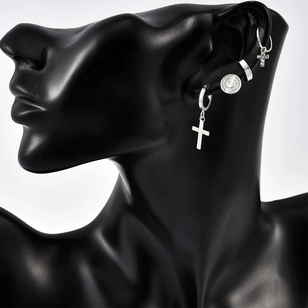 Серьги-гвоздики Женские Простые, с крестом и гуманоидом
