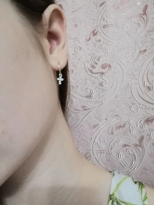 Серьги классные, мне понравилось, правда крест с камушками без застежки, а так все отлично