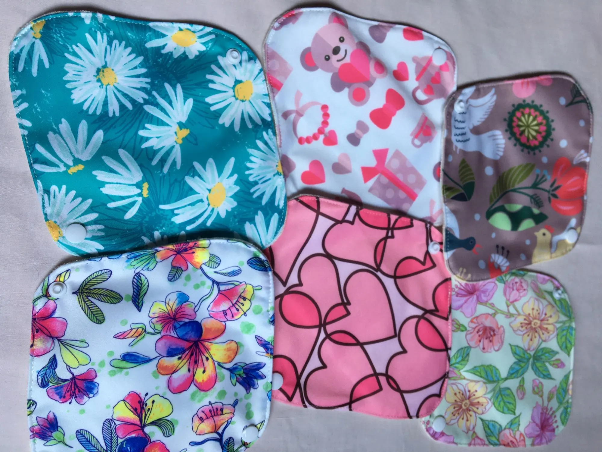 Хорошенькие милашки - многоразовые прокладки!!! Маленький размер идеально подходит как ежедневки или на последние дни цикла. Легко стираются и быстро сохнут. При ношении - удобны, главное для меня, что от них нет аллергии!!!! Принт мне очень нравится, светленький -веселый. Доставка 7 дней до Германии, что очень радует. Продавец отличный, отправляет сразу. Магазином очень довольна. Здесь заказала наборы, сразу всех размеров. По качеству в этом магазине оказались намного лучше ,чем у других продавцов.