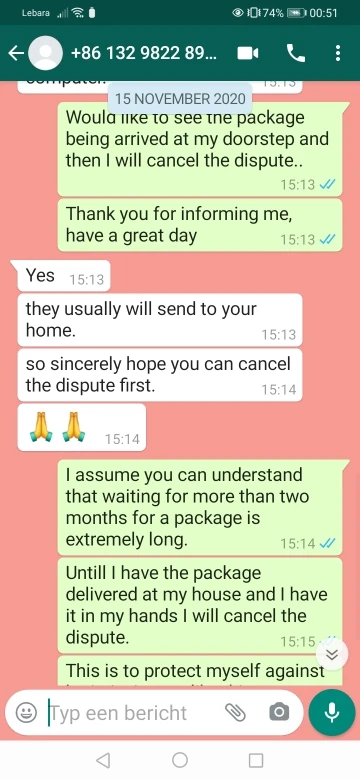 Заказ так и не получил, и после нескольких жалоб, перевод был засекречен, и продавец больше не отвечает мне. Я не со