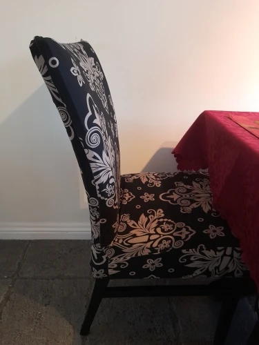 Эти чехлы для стульев такие красивые! Я заказал пять чехлов для стульев. Качество очень хорошее, и они выглядят так модно на моей кухне. Они очень темно-синего цвета, близкого к черному. За свою цену супер. Фантастическое общение от продавца