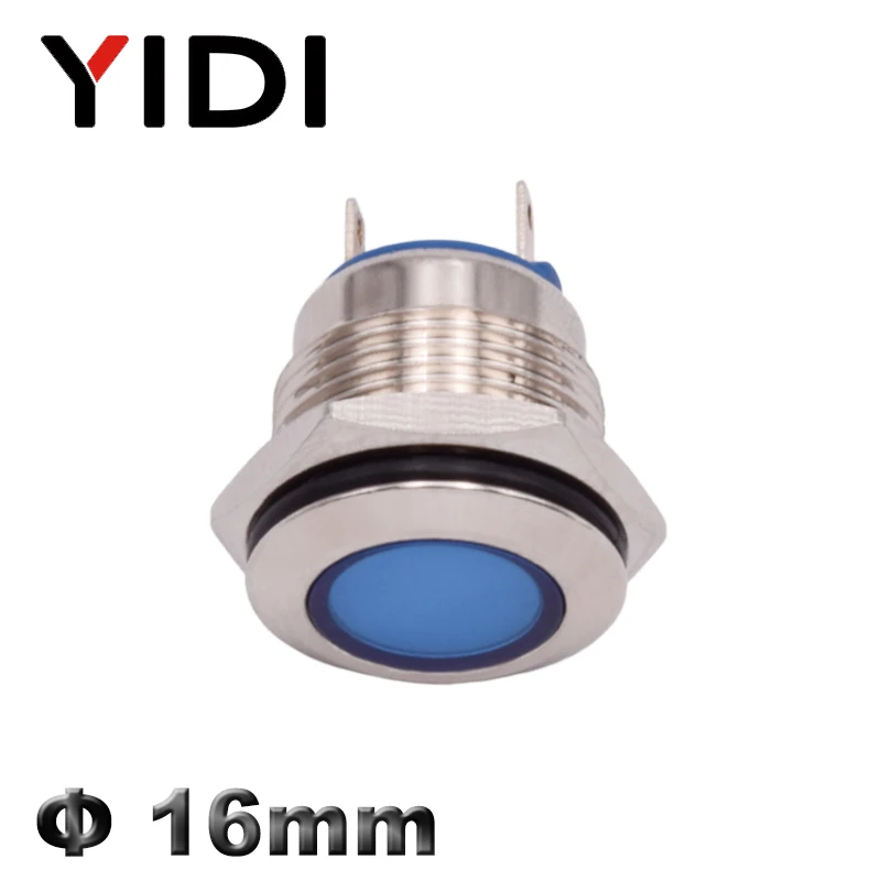 16 мм металлисветильник светодиодный индикатор хромированная панель контрольная лампа сигнальная лампа водонепроницаемый 12 В 24 В 220 В светодиодный красный зеленый синий
