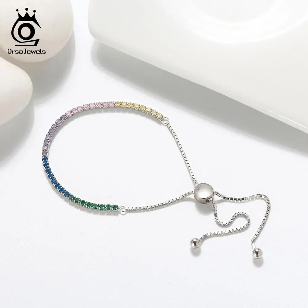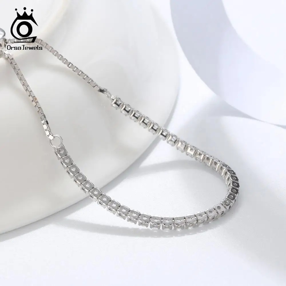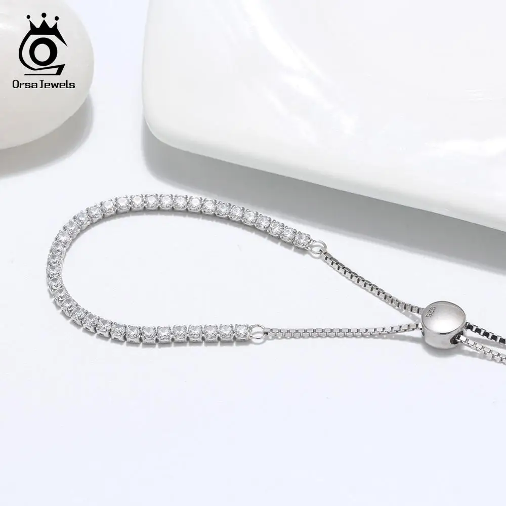 ORSA JEWELS настоящий регулируемый браслет 925 пробы с однорядным прозрачным цирконием, цепочка из стерлингового серебра, ювелирные изделия для свиданий, SB43