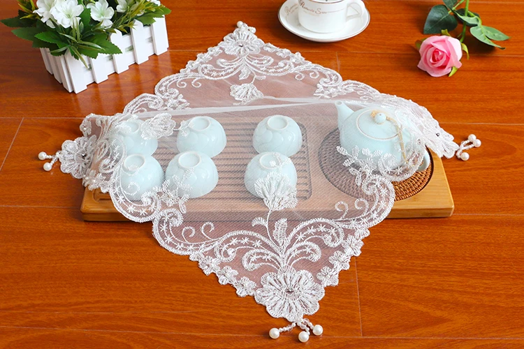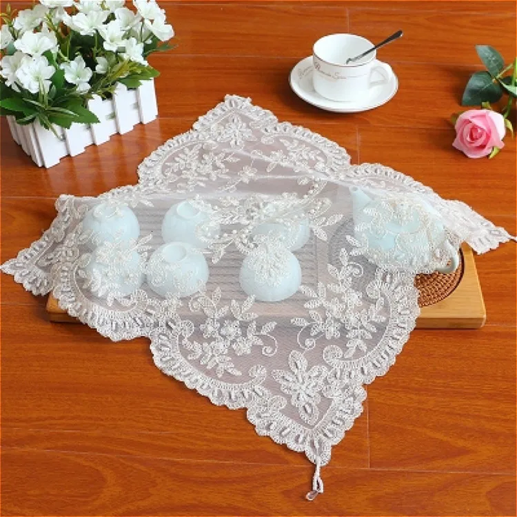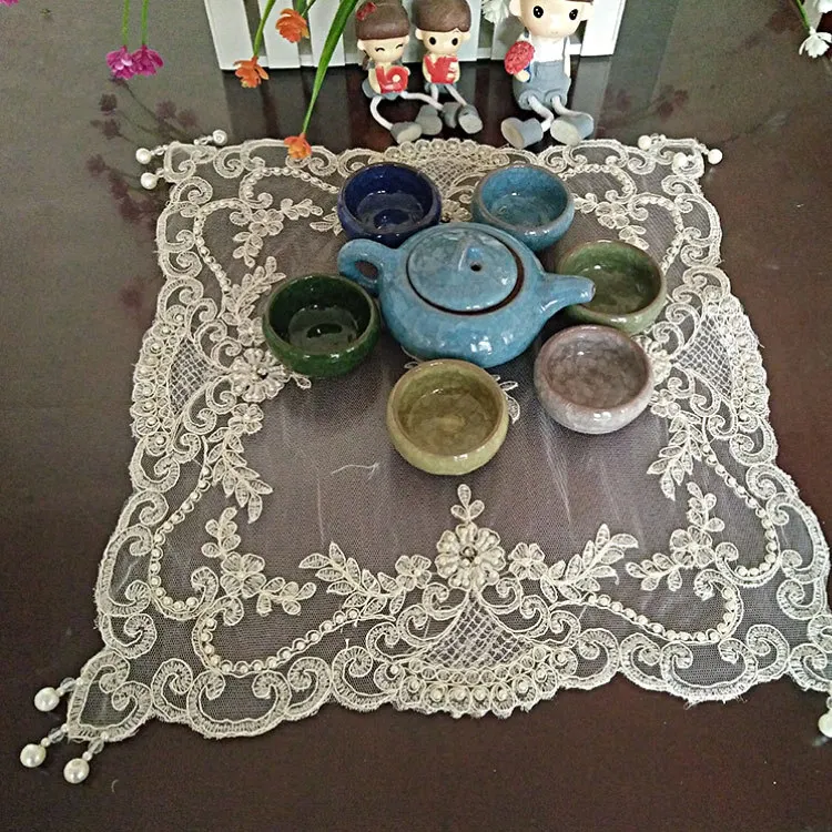 Квадратная подставка 38 см в европейском стиле, изоляционный тканевая салфетка, вышитый бисером чайный набор, тарелка с фруктами, ваза, коврик, обеденный коврик