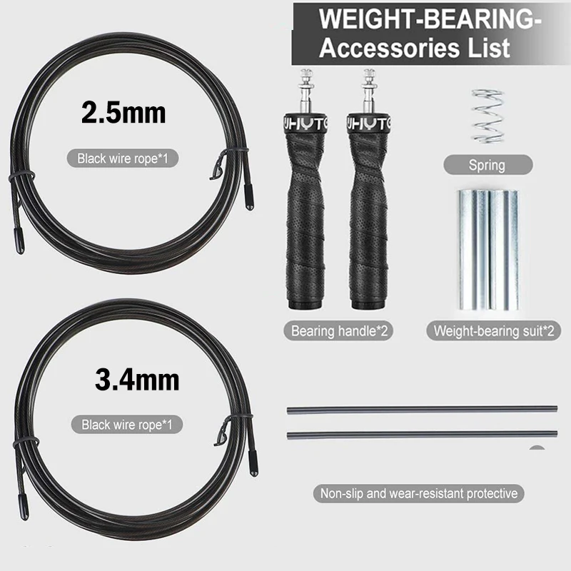 Утяжеленная Скакалка для фитнеса, набор регулируемых скакалок, подшипники, Нескользящие ручки, черная Скакалка 2,5 мм3,4 мм
