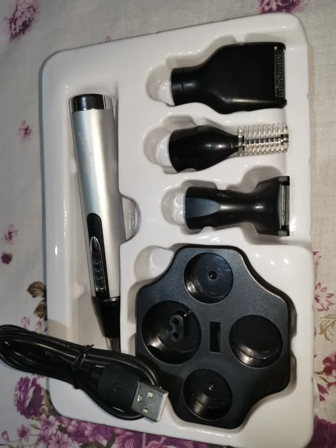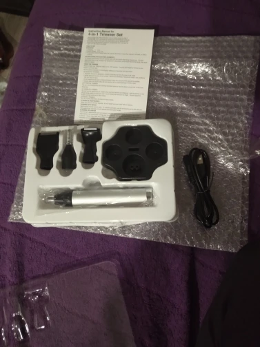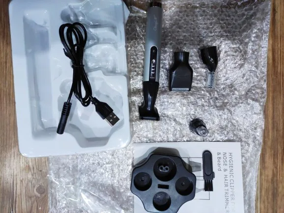 Триммер пришел без коробки, только пластиковая подложка, но все в целости. Трек отслеживания. Все работает, заряжен. Увы, этот аппарат хуже синтетической футболки. Брить им можно только пушок у младенцев, на большее он не способен. Бесполезная вещь.