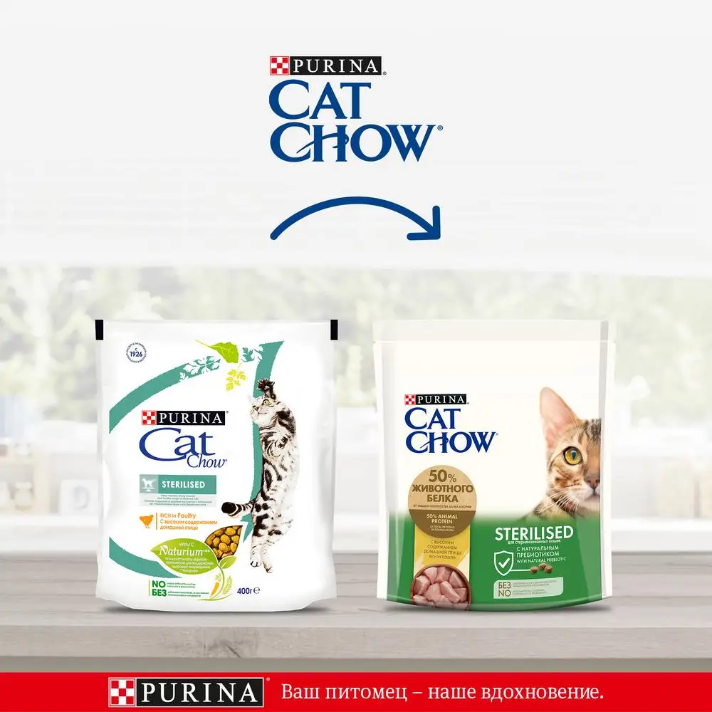 Сухой корм Cat Chow для стерилизованных кошек и кастрированных котов, с высоким содержанием домашней птицы, Пакет, 400 г