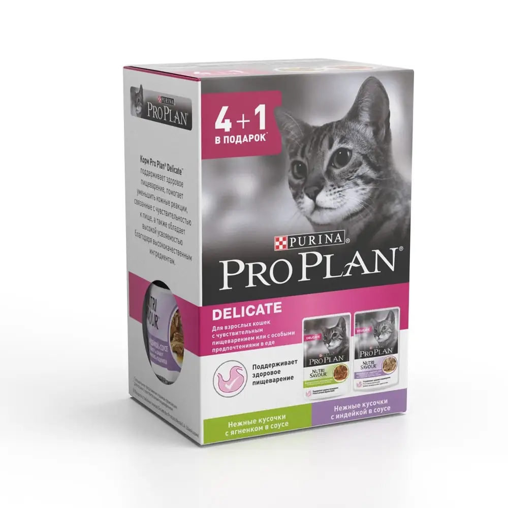 Набор промопаков: Влажный корм Pro Plan для кошек с чувствительным пищеварением, с Индейкой, с Ягненком в соусе, 425 г x 12 шт.