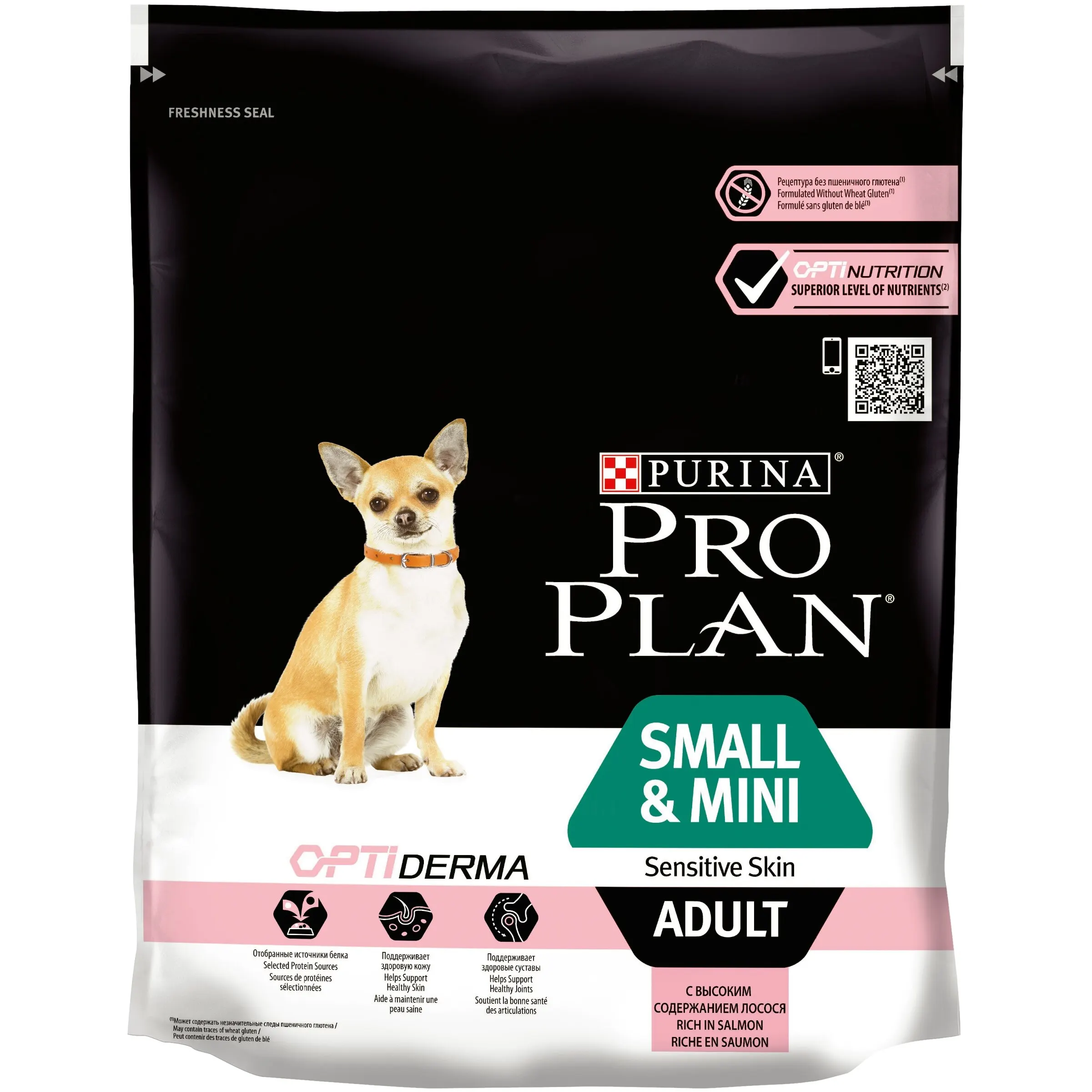 Сухой корм Pro Plan для взрослых собак мелких и карликовых пород с чувствительной кожей с комплексом OPTIDERMA с лососем и рисом, Пакет, 700 г