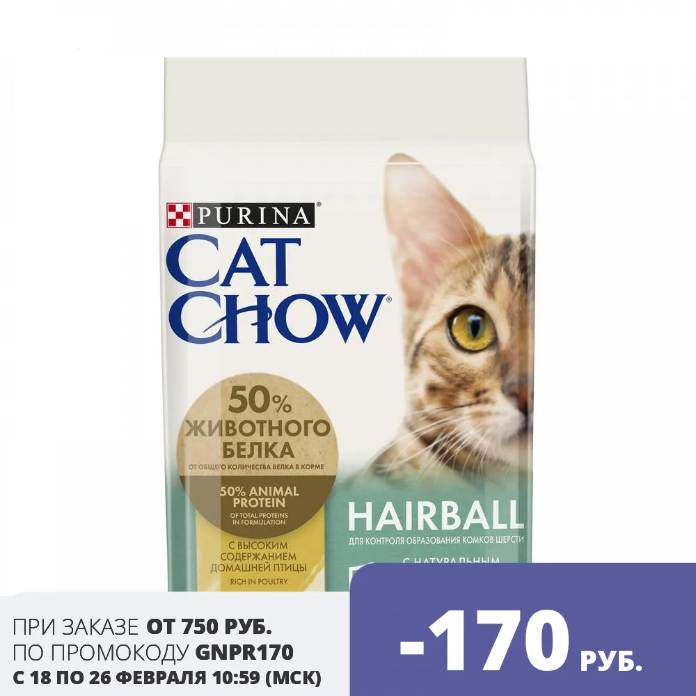 Сухой корм Cat Chow для взрослых кошек контролирует образование комков шерсти в ЖКТ, Пакет, 1,5 кг