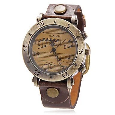 Womage бренд Ретро стиль Уникальный дизайн Музыкальный персонал Мужские Женские винтажные часы PU Кожаный ремешок Военные Спортивные кварцевые подарочные часы