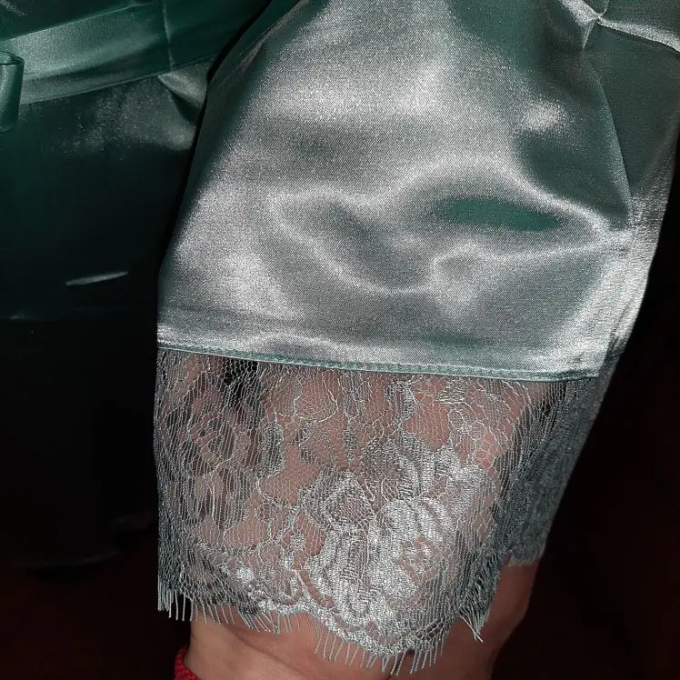 Женский Длинный атласный банный халат, с кружевной отделкой