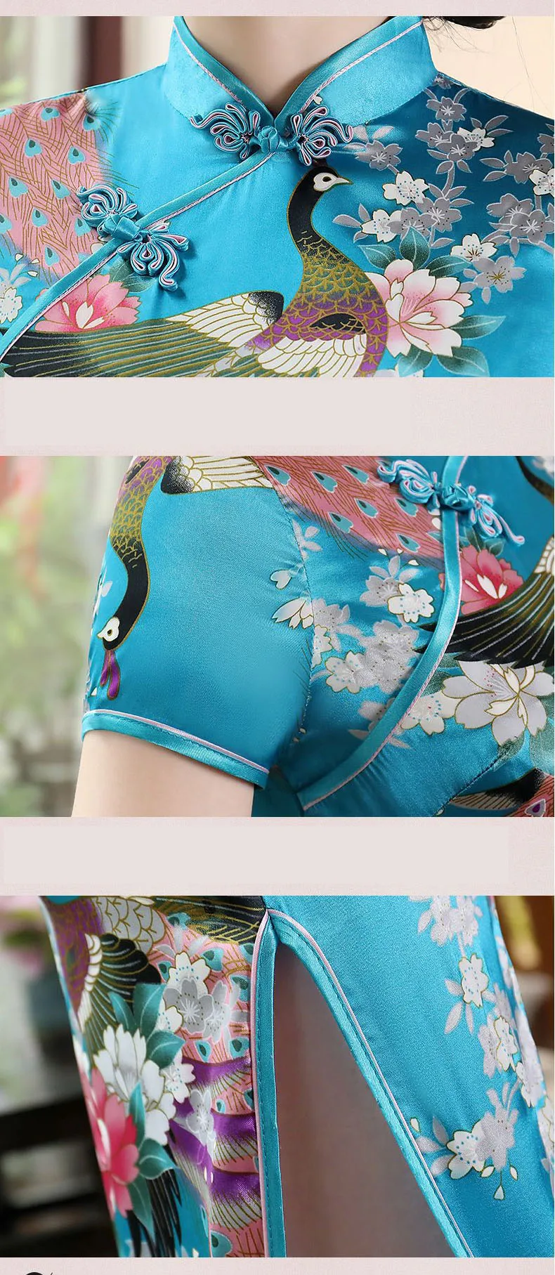 Китайское национальное весеннее длинное платье Cheongsam из павлина...