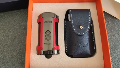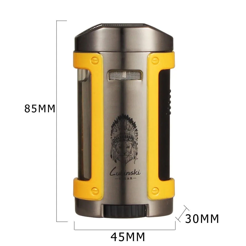 LUBINSKI ветрозащитная Зажигалка для сигар, металлическая портативная синяя зажигалка с 4 факельными огнями, домашняя зажигалка, держатель пурпурного цвета, верхние зажигалки для курения с чехлом, подарочная коробка