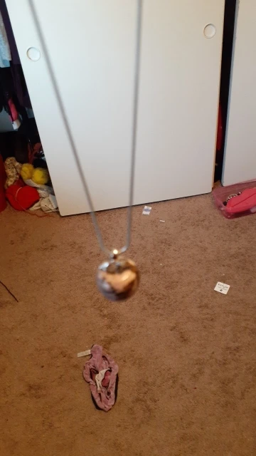 Немного больше того, что я ожидала, около 2 см на 2 см, по сравнению с камнем, очень красиво. Система подвешивания цепи просто приклеивается к клеящему пистолету, чтобы следить за временем, если он сопротивляется