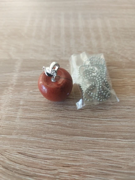красивое , тяжеленькое , без брака яблочко, заказ выполнен быстро, продавец положил подарок.цепочка тонковата, но красивая.