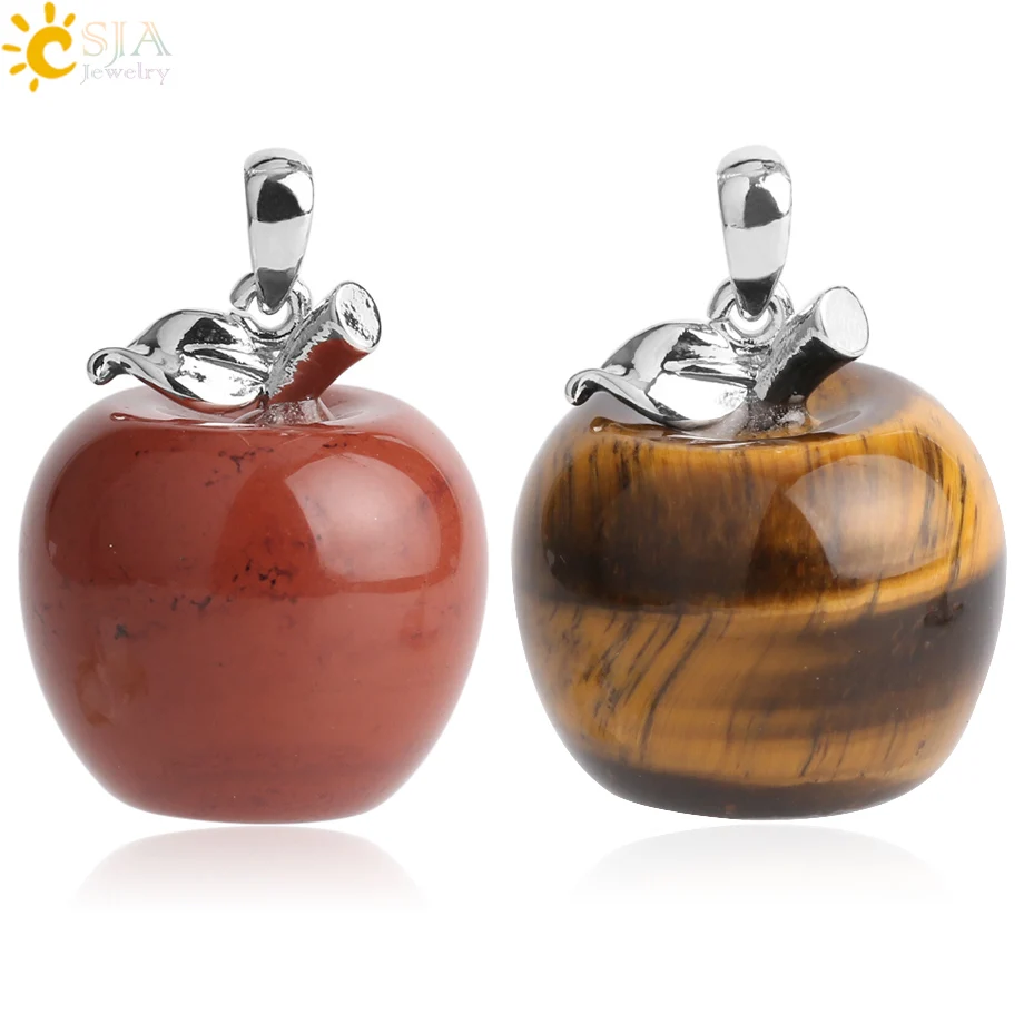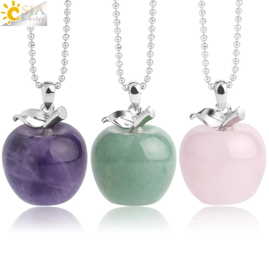 CSJA Apple, подвеска из натурального камня, кристаллы аметиста, подвески, розовые Кварцевые ожерелья, ювелирные изделия для женщин, Chrismtas G046