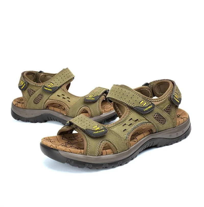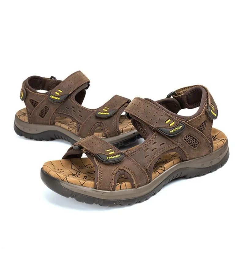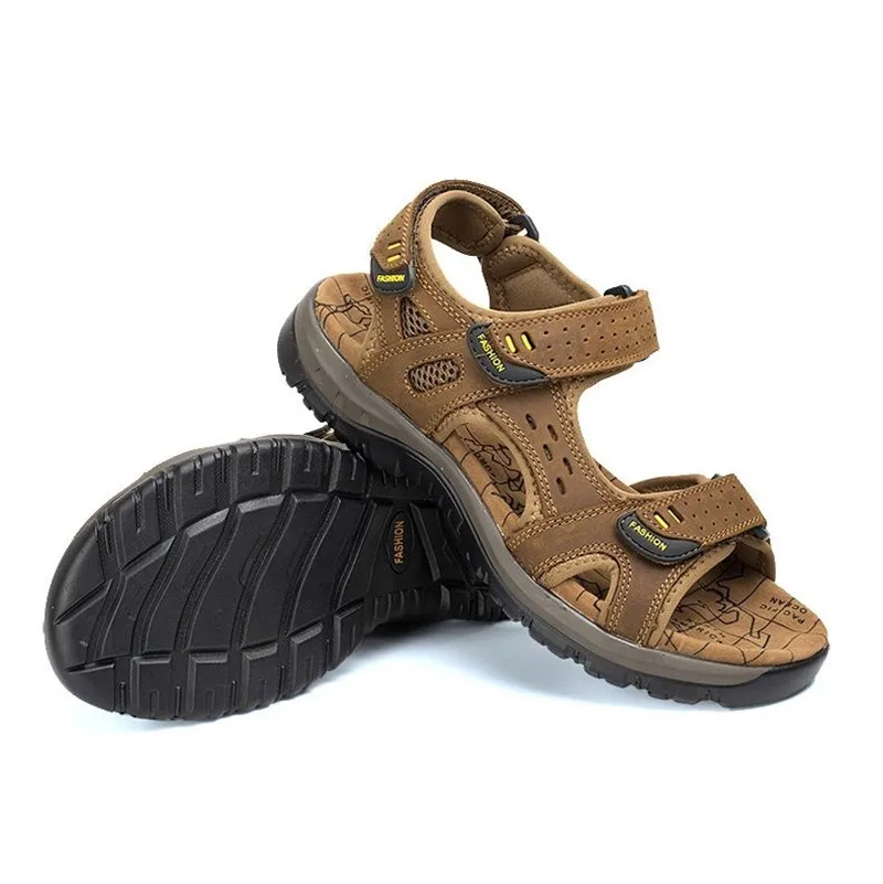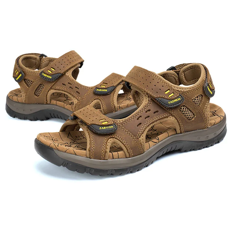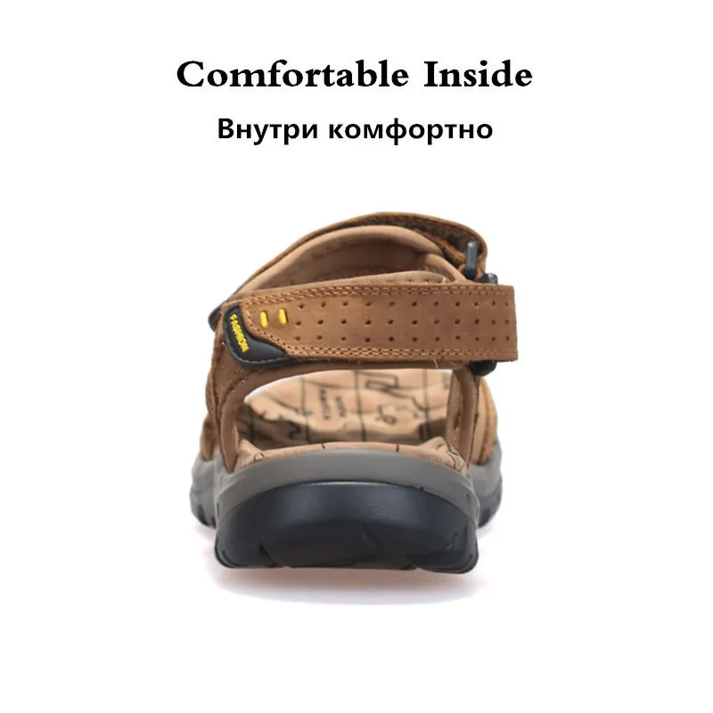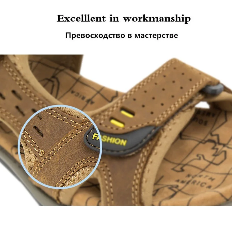 Сандалии мужские из натуральной кожи, на мягкой нескользящей подошве, для пляжа