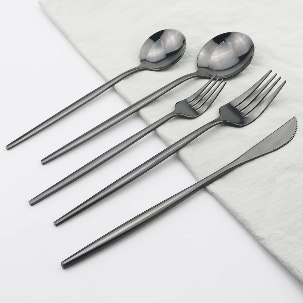 Черный золотой набор посуды tainless Сталь набор столовых приборов зеркало Ножи десертная ложка Вилка для обеда столовые приборы для путешествий Портативный посуда