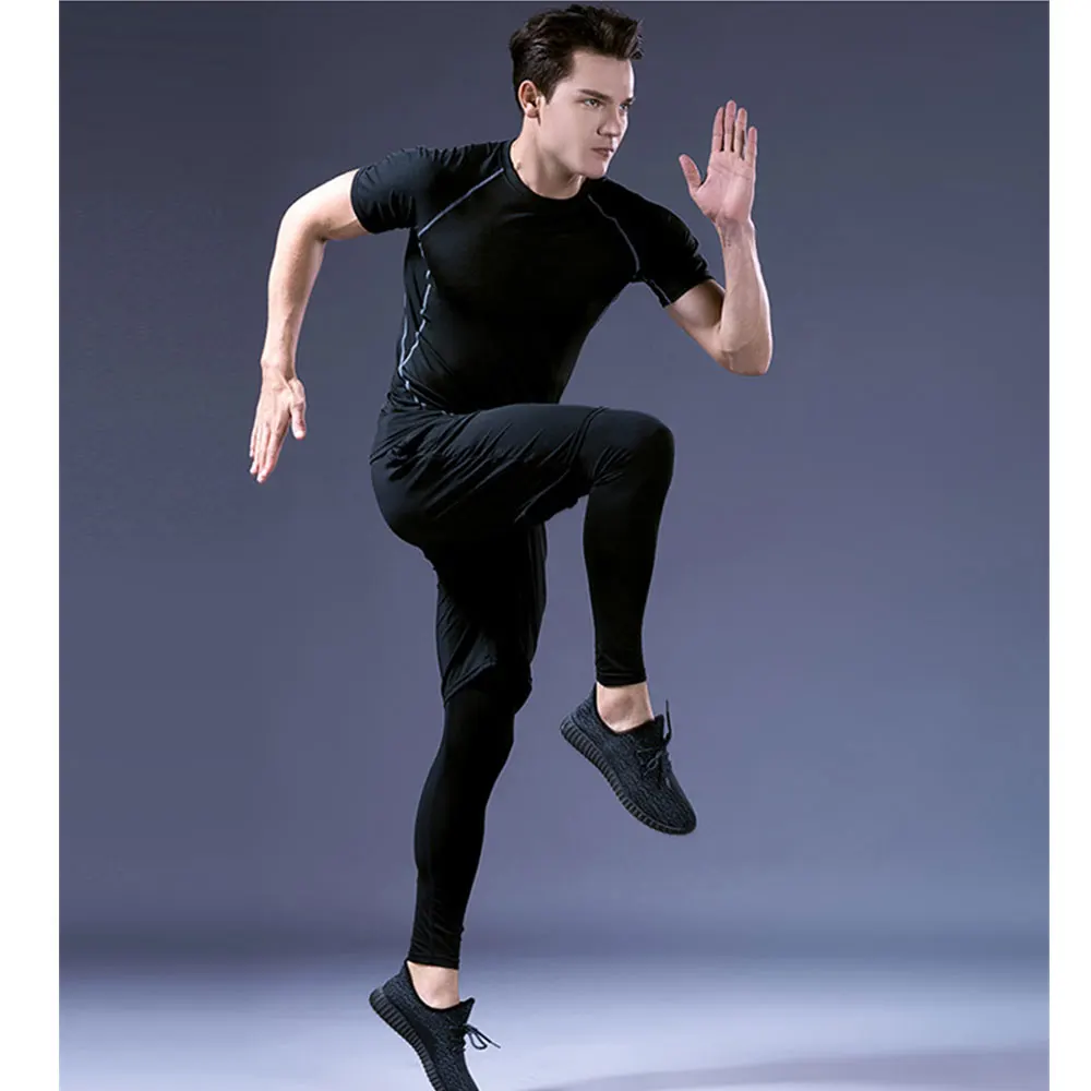 Мужские футболки, быстросохнущие облегающие футболки для фитнеса и бега, мужская спортивная одежда, футболка для спортзала, Спортивная компрессионная футболка с коротким рукавом для спортзала