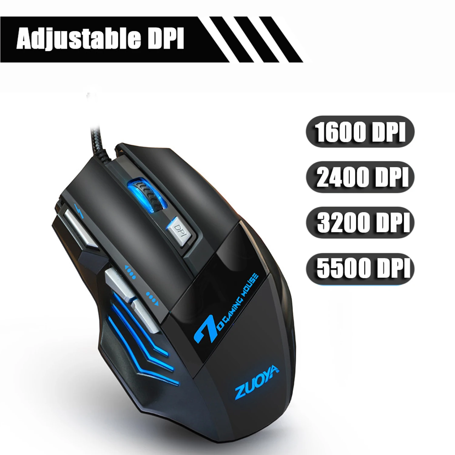 Мышь ZUOYA Проводная игровая, 7 кнопок, 5500 DPI светодиодный LED, оптическая, USB