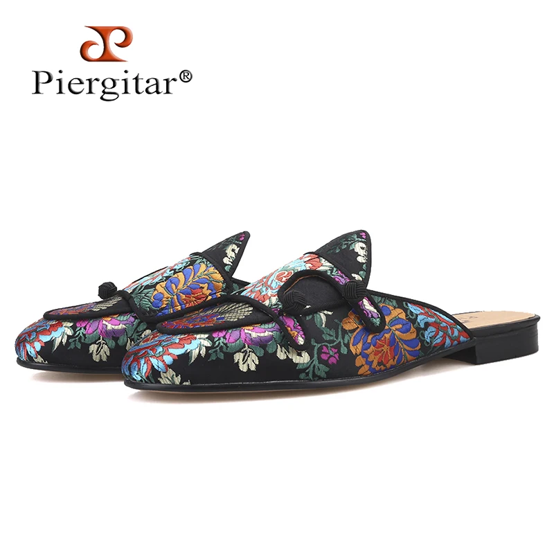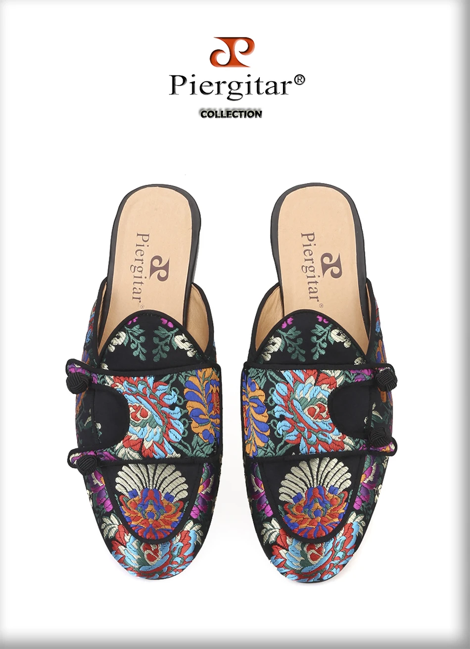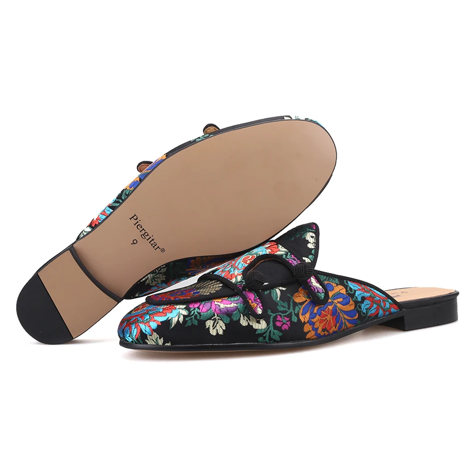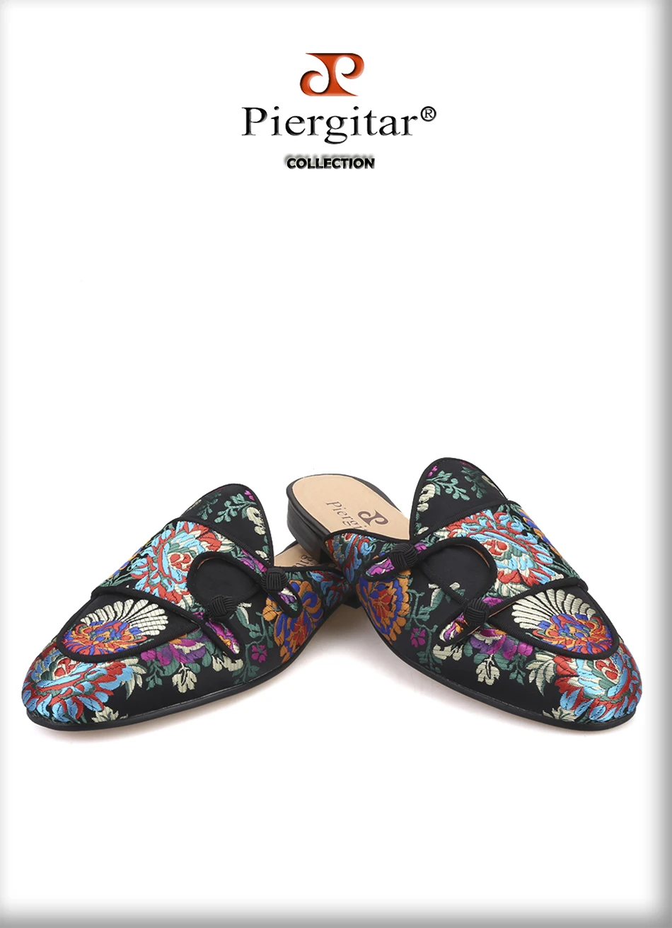 Шлепанцы мужские Piergitar, шелковые, с цветочным узором, для вечеринок и банкетов, ручной работы, кожаные, 2019