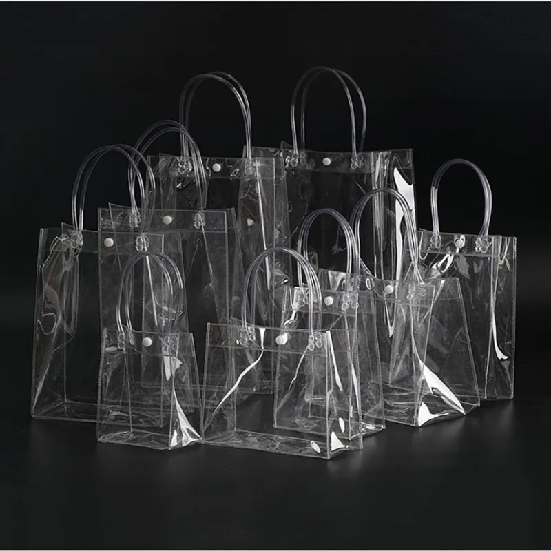 20 шт.лот, прозрачные мягкие подарочные пакеты из ПВХ с ручной петлей, прозрачная пластиковая Сумочка, косметичка