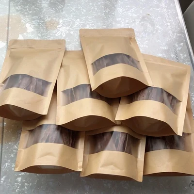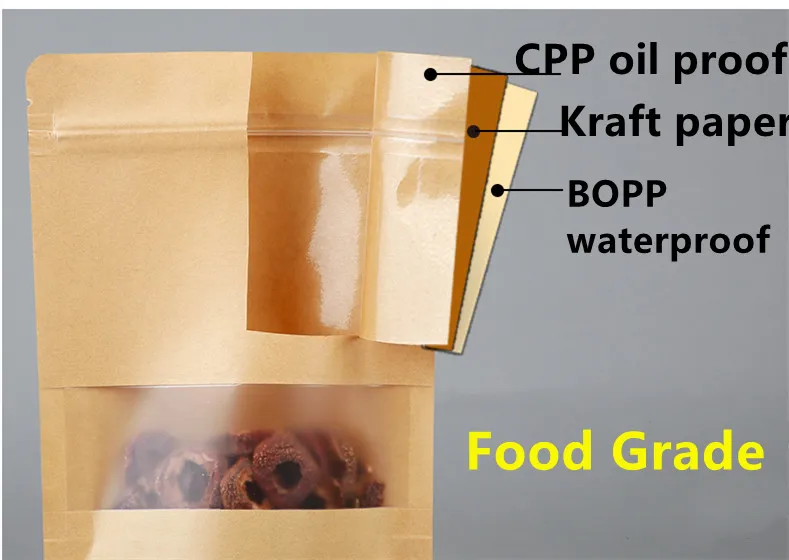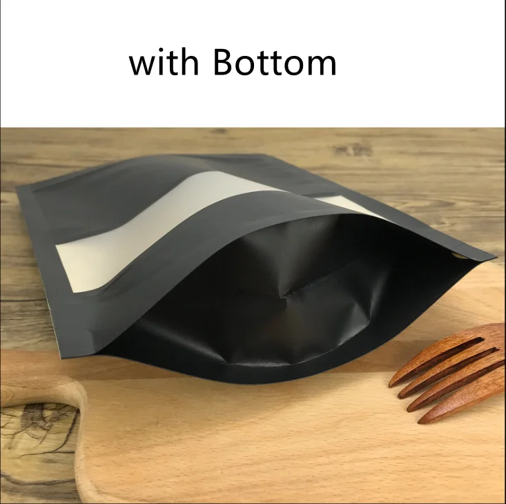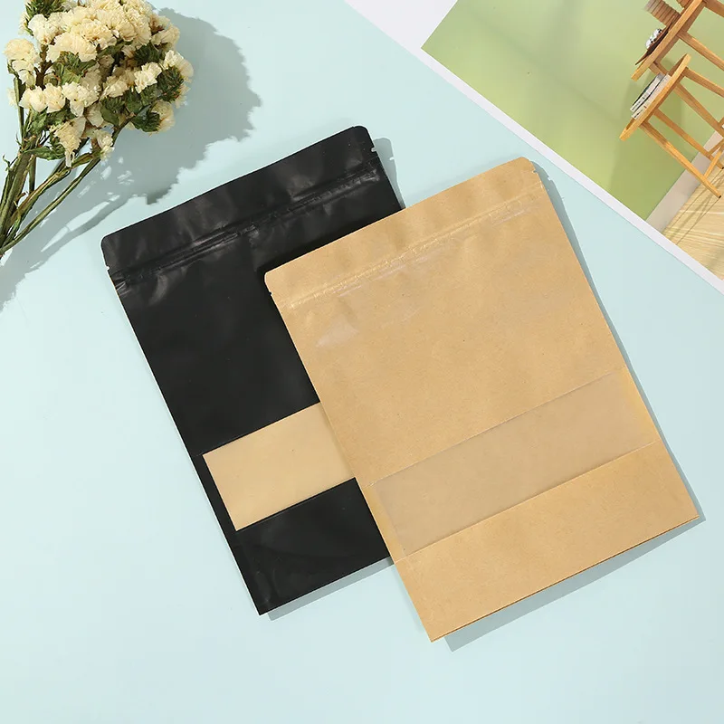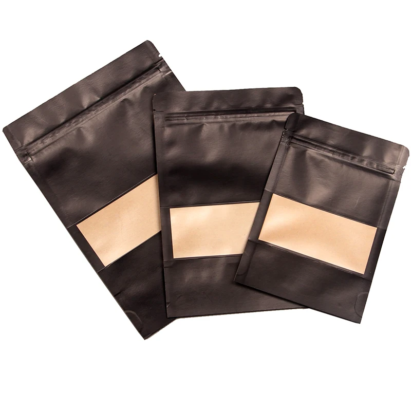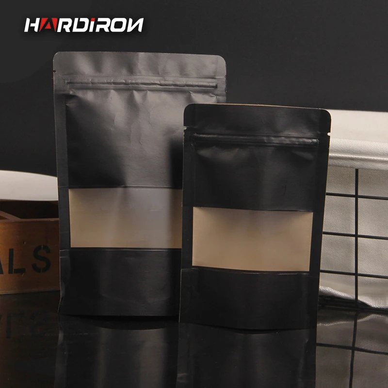 Матовый плотный черный картонный пакет из крафт-бумаги с застежкой-молнией, пакеты для чая, конфет, еды с прозрачным окошком для дисплея, стоячий упаковочный пакет