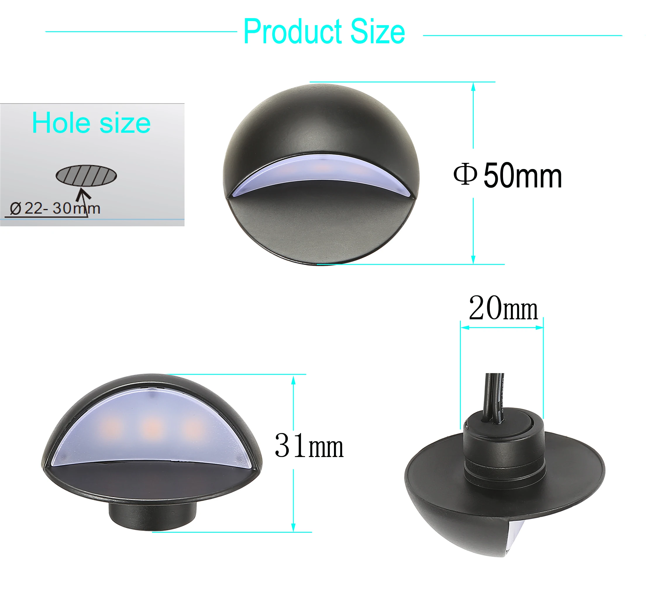 Цвета освещения:Теплый белый (2800-3200K)Холодный белый:(6000-6500K)Напряжение: DC12VВыходная мощность скорости:Белый/теплый белый/холодный белый: 1,6 WRGB : 1 ВтСветовой поток: 50 лмУгол луча: 120 °Светодиодный чип: SMD5050Чипы: 3 шт.IP Рейтинг: IP67Применение: открытыйДлина провода: двойной 0,5 мСертификация: CE ROHSЦвет изделия: черныйМатериал: Поликарбонат + нержавеющая стальДеменция: Φ50 мм * H 31 ммВес на светильник: 76 гГарантия: 2 годаФункции: декоративный светильник