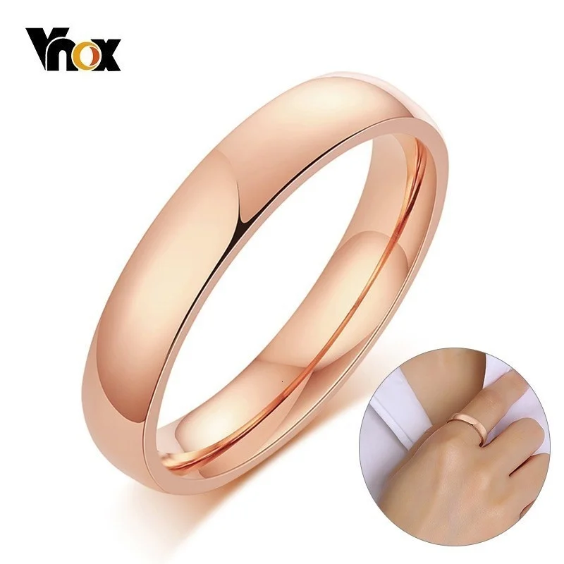 Vnox Классический 4 мм кольца для мужчин и женщин Глянцевая нержавеющая сталь в 585 розовое золото Тон простые обручальные кольца 5 #-10 #