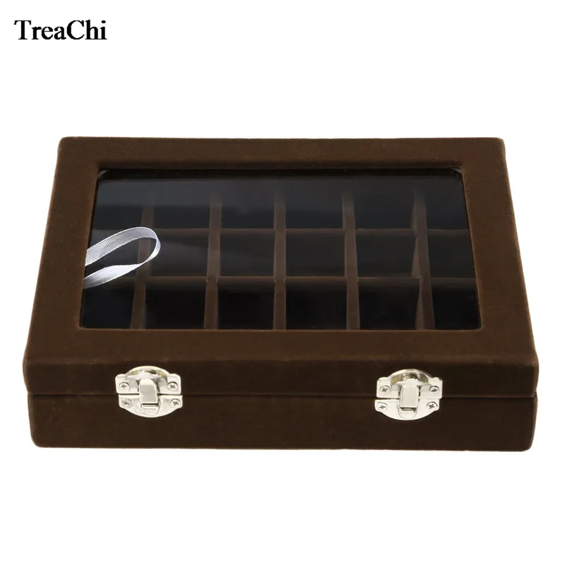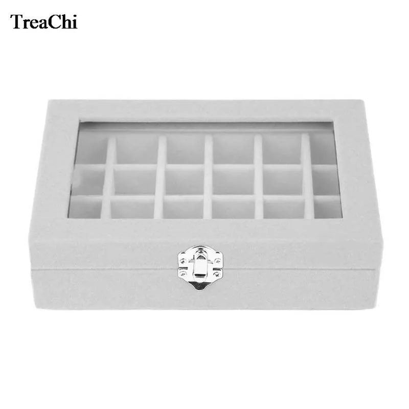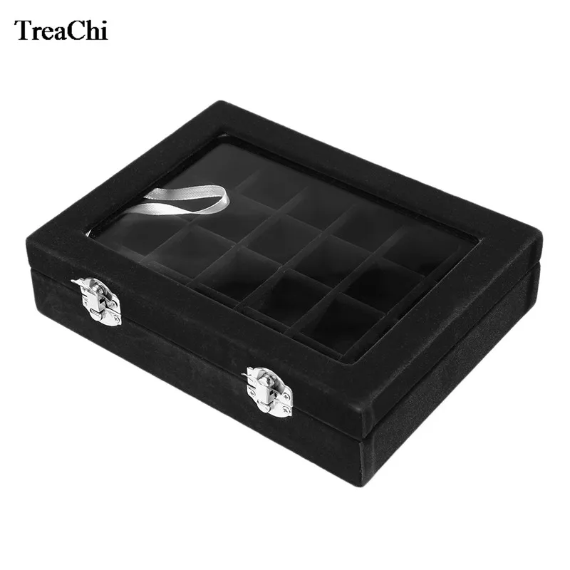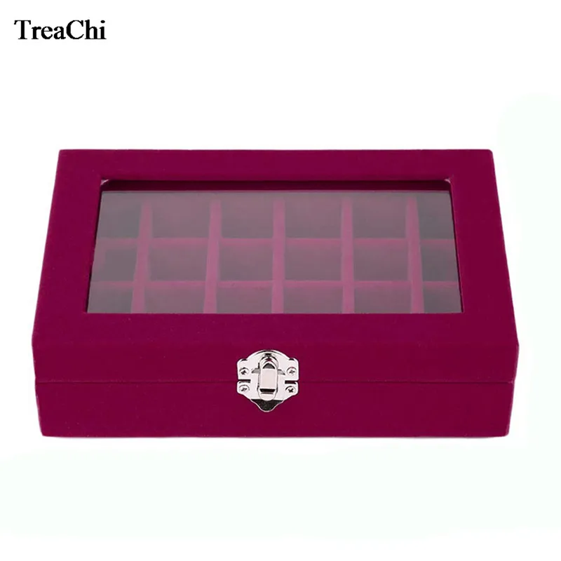 Бархатные посылка катулки для ювелирных украшений с 24 ячейками и стеклянной крышкой, органайзер для хранения колец, серег, ювелирных украшений