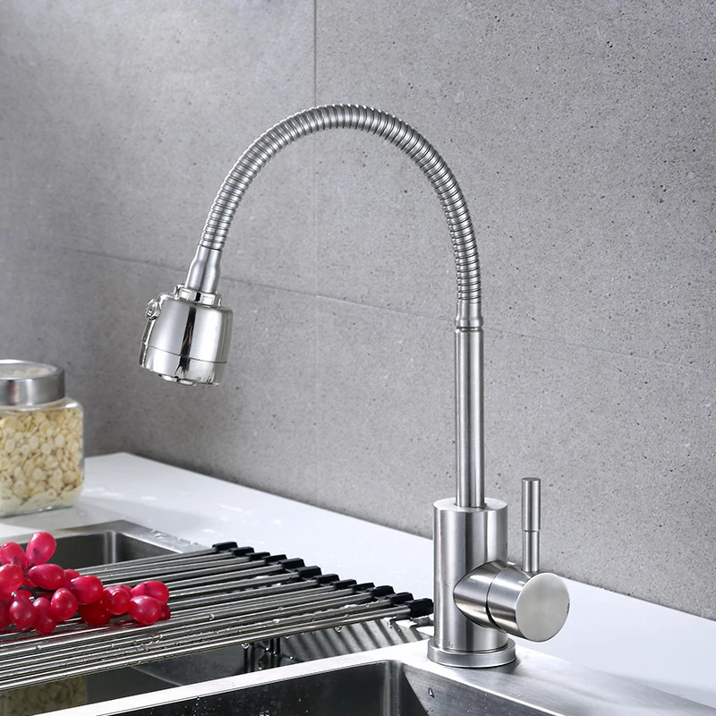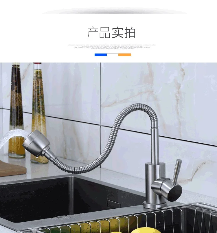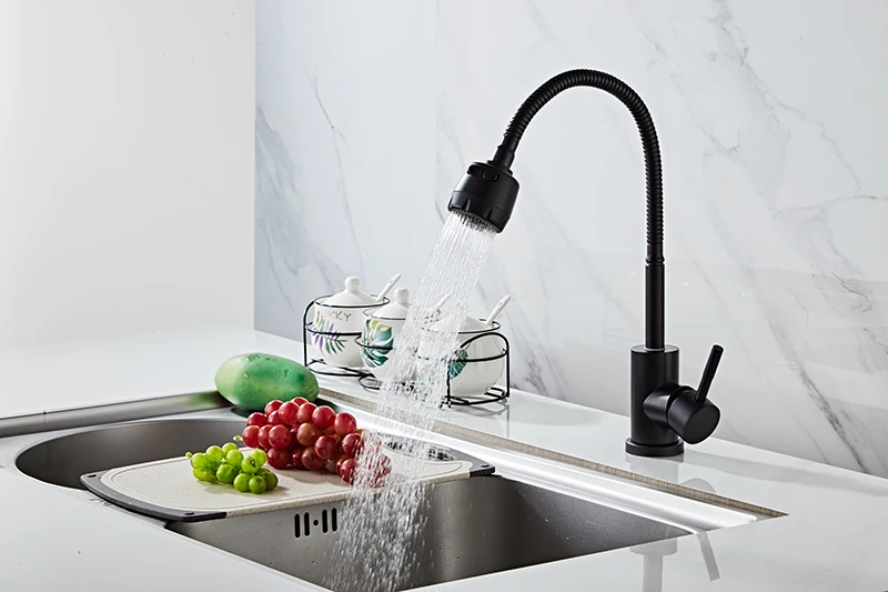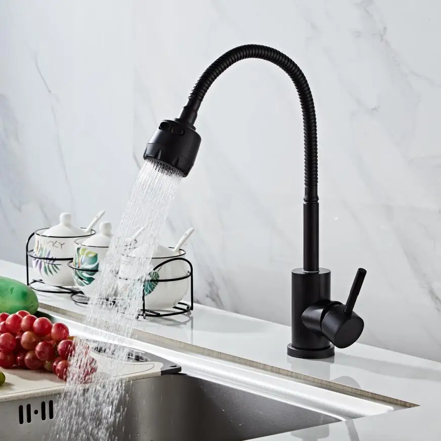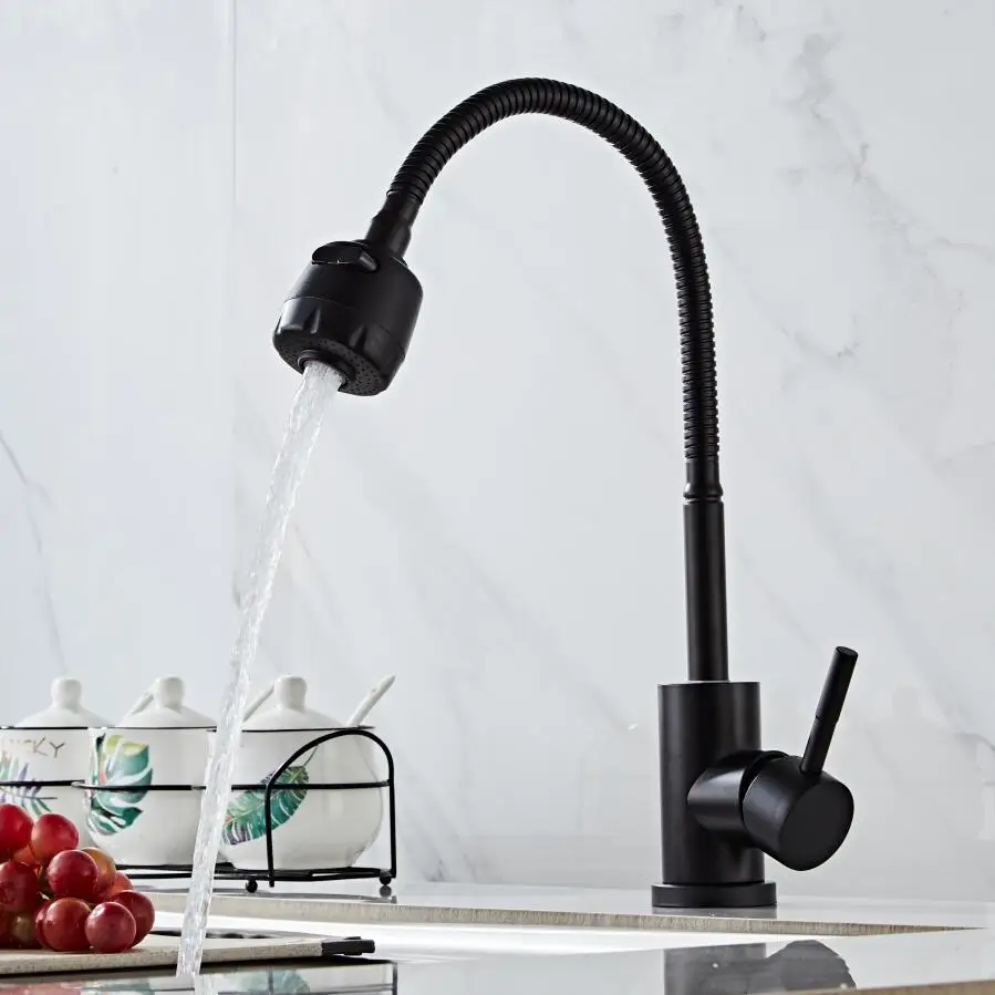Кухонный смеситель в современном стиле, гибкий кухонный смеситель для раковины, смесители с одной ручкой из нержавеющей стали 304, черная, для холодной и горячей воды