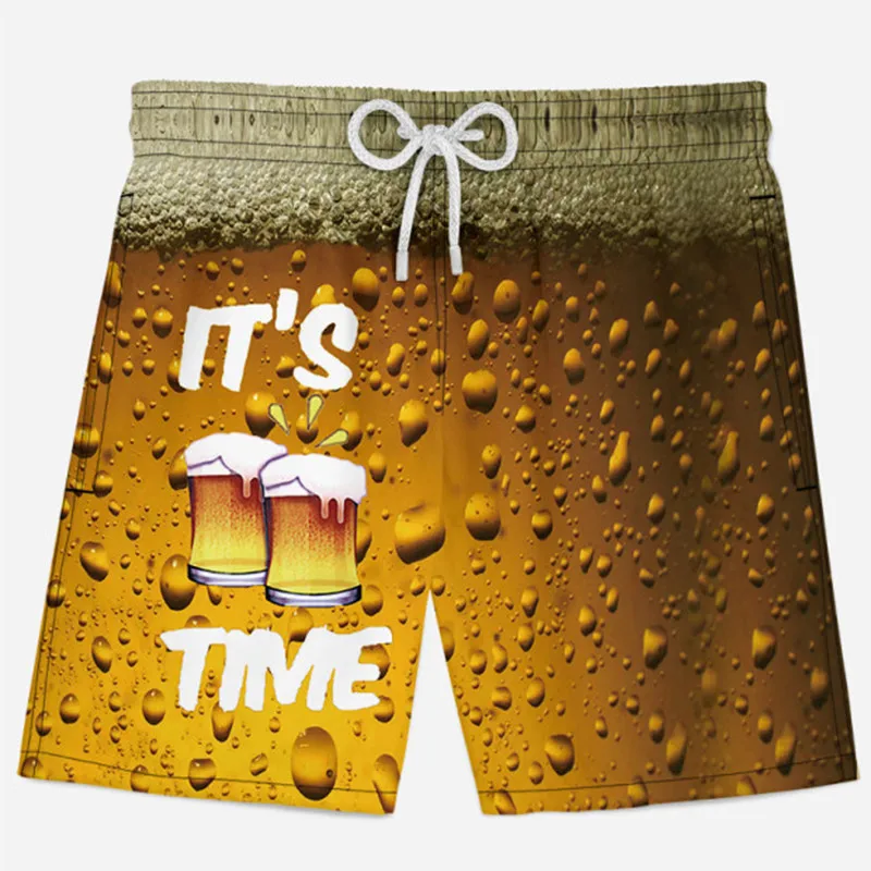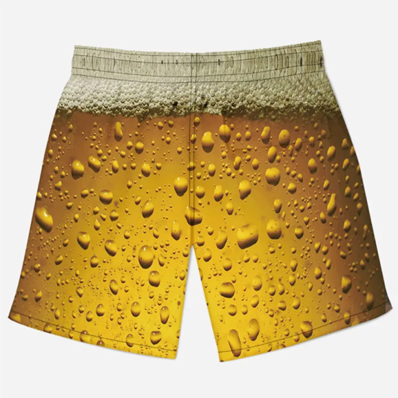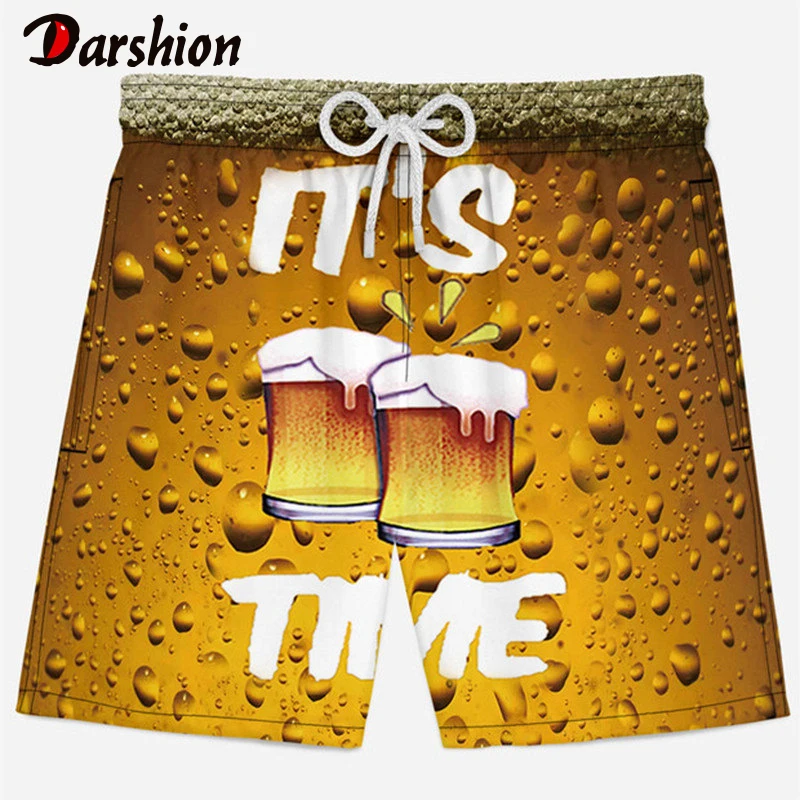 Мужские повседневные шорты с 3D принтом, пляжные шорты из молочного шелка с принтом пиво, свободные эластичные быстросохнущие шорты для мужчин размера плюс, лето 2019