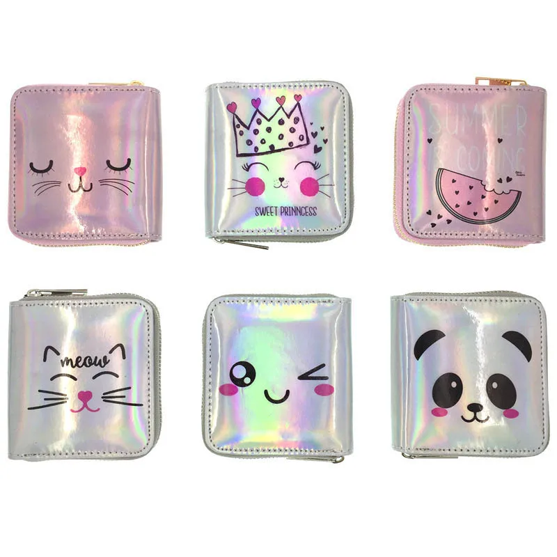 KANDRA симпатичный мультяшный серебристый и розовый Голографический лазерный короткий кошелек, Женский Блестящий маленький кошелек из искусственной кожи, клатч, праздничная сумка для девочек