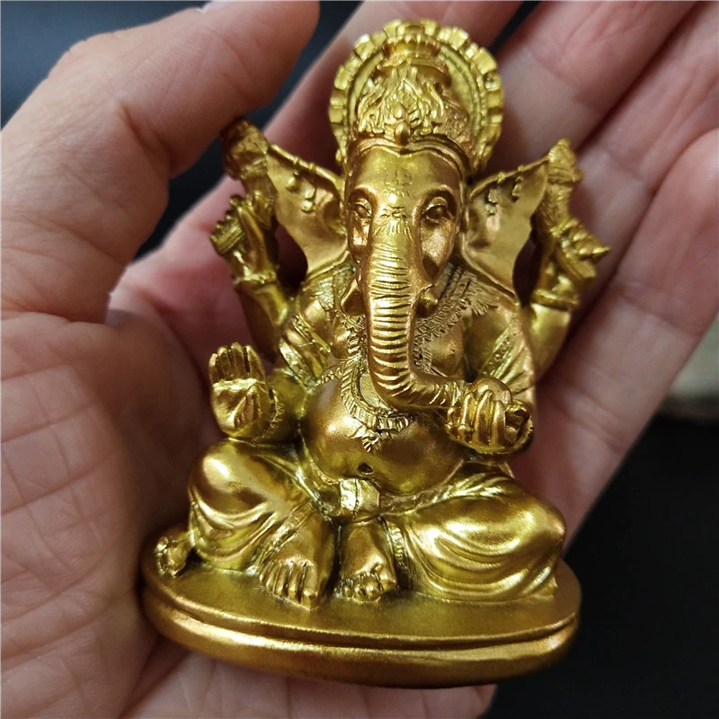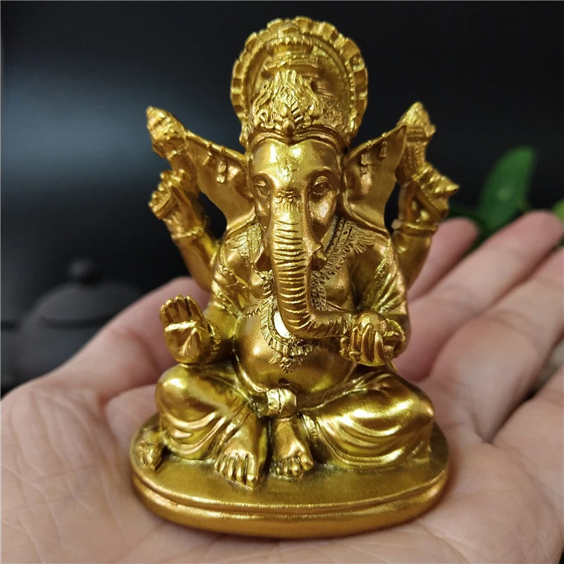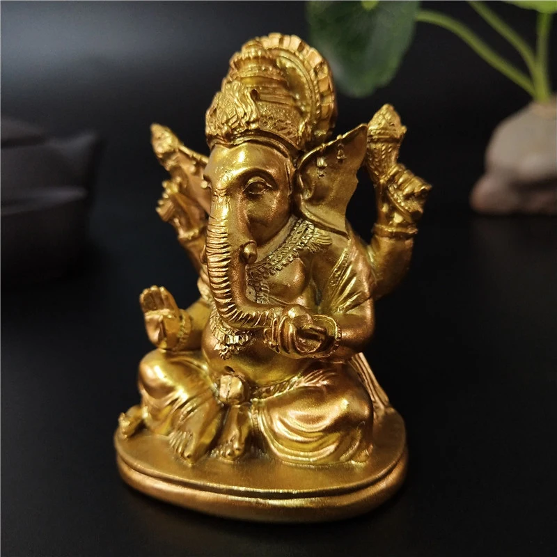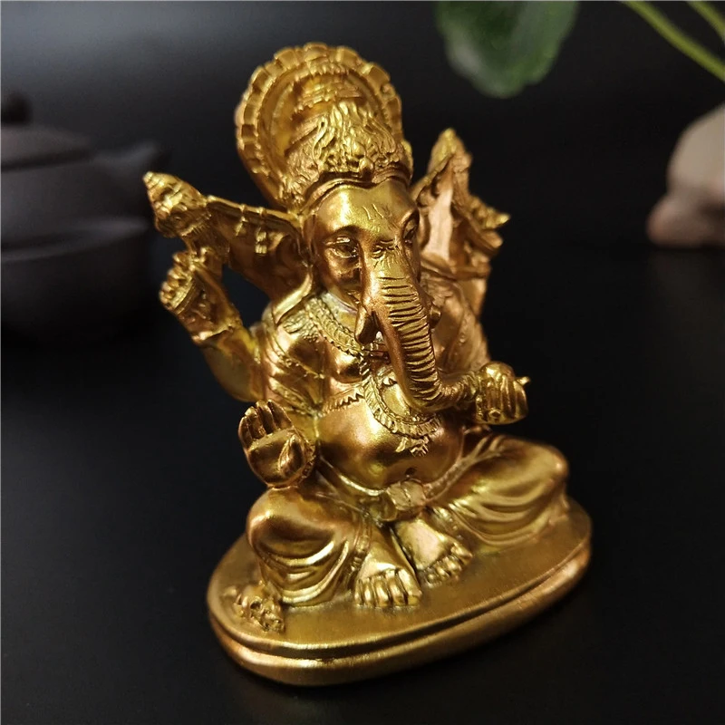 Золотая Статуя Будды Ганеша, украшение для дома, смола для сада, индийский слон, Бог, скульптура, фигурки, домашний декор, статуи Будды, ремесло