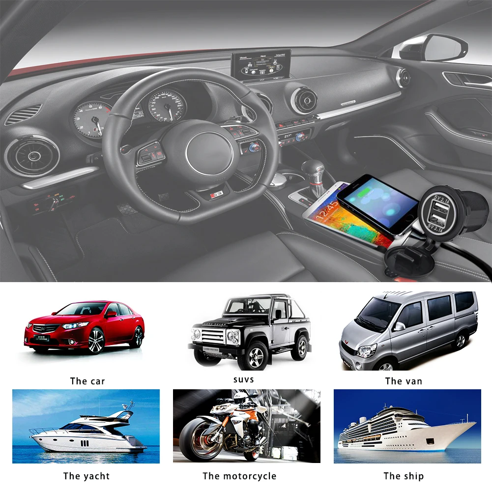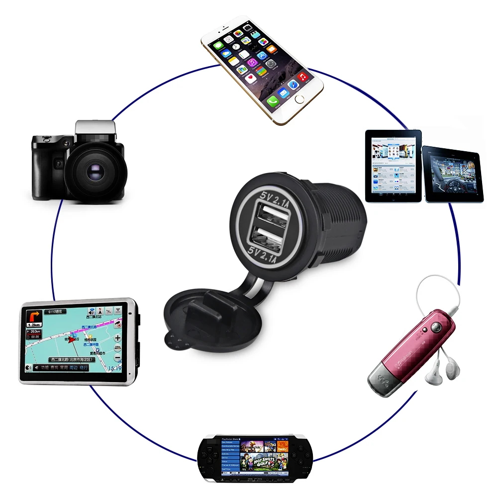 Водонепроницаемый DC 12-24V Dual USB зарядное устройство розетка пи...