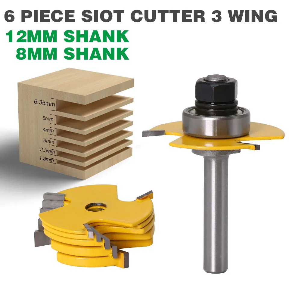Набор пазовых фрез, 2 шт., 6 шт., набор фрез с 3 крыльями долото дл...