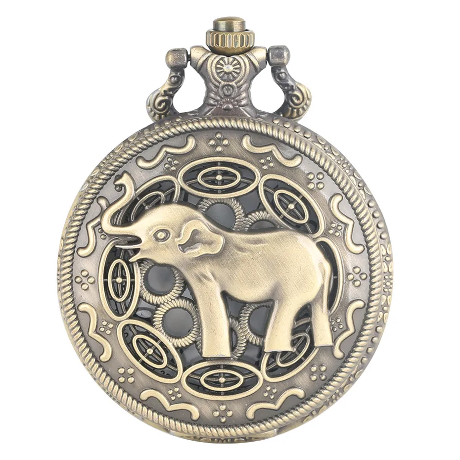 Мужские и женские кварцевые часы в стиле ретро, бронзовые карманные часы в виде полого азиатского слона, ювелирное изделие, Подвесные часы, подарки, новинка 2019